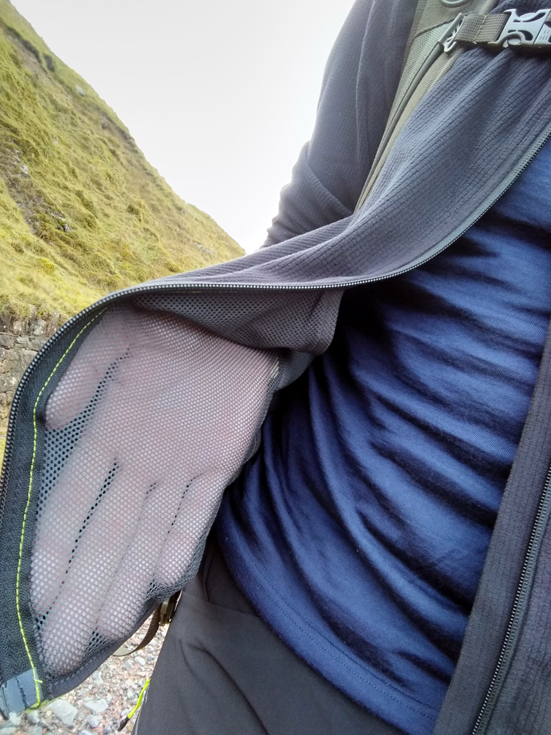 In addition to the good-sized pockets and compact design, the fleece has several inserts around the armpits to aid ventilation, although small did help a great deal over not having them. The neck is not the highest but does come up just below half way so offers some protection from wind chill but it’s not high enough to cover the chin.