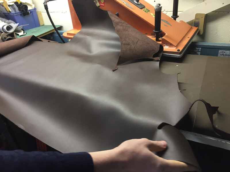 With the last decided a pair of boots comes together via a series of very specific steps, starting with cutting the leather with "knives" which resemble oversized cookie cutters. From there the uppers are assembled, with each piece matching a paper outline up in Mike's office, and reinforced where necessary. One of the surprises at this stage is that although a leather hide looks uniform at first sight there's actually a big difference in quality between the upper and lower part of a hide. The leather from along the back is much more resistant to creasing than the lower, belly, areas. To make best use of a hide the main part of the upper is taken from the upper back while the ankle cuff's softer but more crease prone leather comes from lower down.