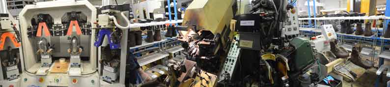 As the boot progresses from an upper to a boot it's stretched over the last and married to a midsole and sole unit. Glue, now a PU based after traditional neoprene glue caused issues in the heat of the middle east for the military, is applied and a rand added where appropriate. After passing through a bewildering array of very industrial looking machines the boot emerges to be hand polished and treated ready for sale.