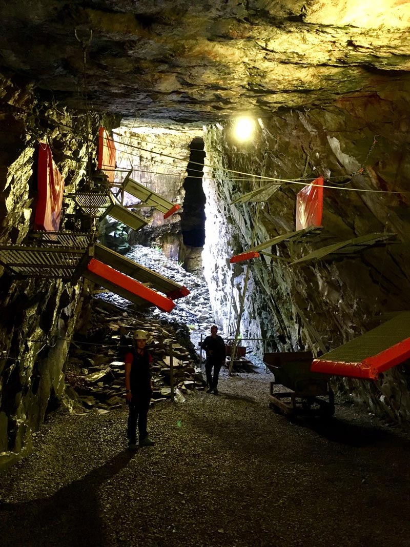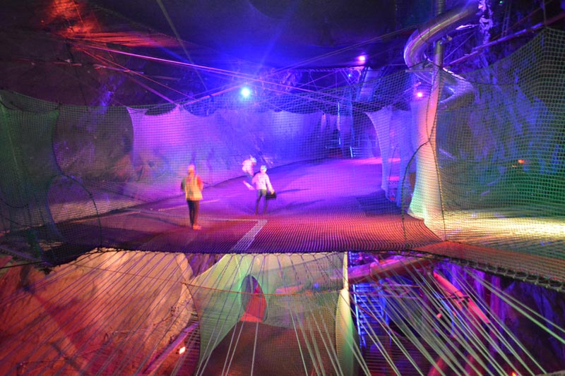 Bounce Below and Caverns are two of the three components of the Zip World Llechwedd complex, with Bounce below offering a series of net-based adventures where you bounce and slide through 6 levels with drops of up to 20metres below and Caverns offering an underground zipline and via ferrata complex in the depths of the old slate caverns.