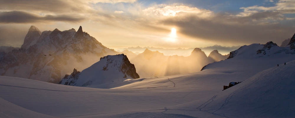 Written in English, French and German the book is divided into Alpinism, Skiing, Climbing, Landscape, Ice Climbing, Flight and Work. The Mont Blanc Massif, close to the author's home in Chamonix, is the main focus and particularly the Grandes Jorasses where he's probably spent more time than in his own bed. While all the images get captions that go beyond a simple single-liner, and are given context, the Climb and Work chapters benefit from additional paragraphs giving the story behind the picture. Classic routes roll out one after another, the Innominate Ridge, Freney Pillar, Whymper Couloir, Colton-MacIntyre and Eiger North Face, with the author treating time and light as an artist uses palette and oils.
