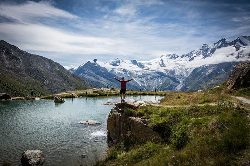 Kreuzboden lake with the Mischabel mountains in the backgroundKreuzboden lake, with the Mischabel mountains in the background