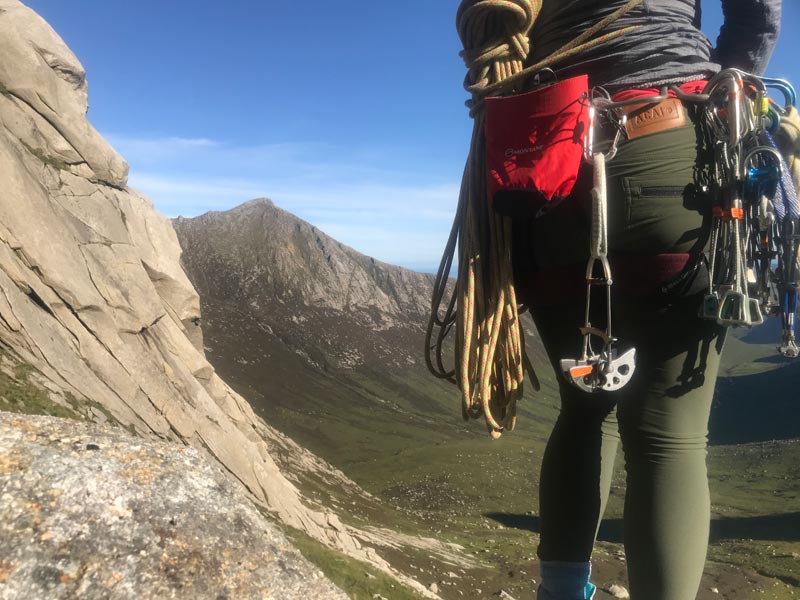 The trousers seemed to provide adequate protection against ticks whilst walking through the bracken and heather in the valley of Glen Rosa. Scrambling up granite slabs, including navigating a fair amount of down climbing and ‘shuffling’ along the sharp granite slabs and weaving between the towering tors. The trousers did start to have some noticeable small wear from the rough terrain, which could have been due to the very sharp nature of the Scottish granite.