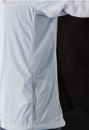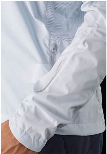 A minimalist jacket with a highly functional hood, created for runners who aren't stopped by the weather. Wind and water resistant Lumin™ fabric in the body and sleeves deflect inclement weather, while large mesh underarm panels keep body heat under control. Reflective blazes improve runner visibility in low light. Super compact, and weighing a scant 135 g (4.8 oz), the hoody stows into its own pocket for transport.