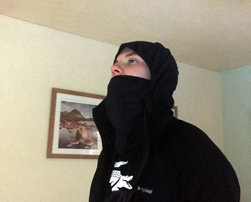 Technical aspects aside the Extrem 7000 Hoody is a joy to wear. Once you've pulled the shoulders into place it's extremely comfortable against the skin for use as a single layer and as a mid layer its flexible, breathable, quick drying and seals well wherever cold could get in. The hood is exceptional and while the balaclava may feel a bit loose deployed as a neck gaiter or mask that's actually a bonus over a tighter fitting mask. Quite simply you can breathe with hood up, googles on and the neck and face mask up without "fogging" or prolems with condensation on the inner surface.