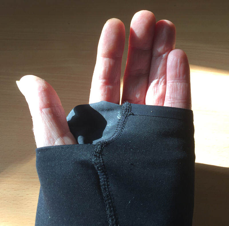 The bonded seam at both the cuffs and hem give a good seal over gloves and trousers, helping the hoody to create its own microclimate and if does get wet both fabrics are quick drying. The thumb loops are functional, for those who like them, and extend the sleeve protection to the base of the fingers, making them effectively half length liners when used under a winter glove.