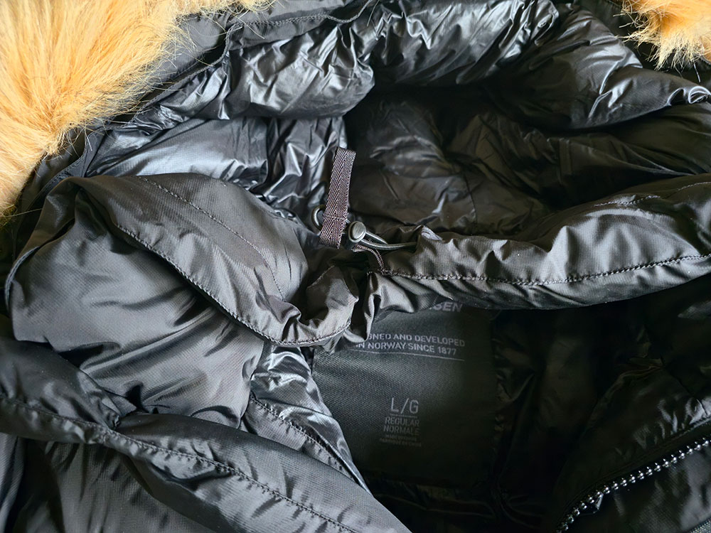 The hood is, to put it bluntly, large enough to accommodate a head with both a mid-layer hood and a helmet on with space to spare. Thankfully, though, it’s very adjustable and there’s an adjustable internal baffle at the neck in addition to multiple cinching points on the hood. The result, in combination with the faux fur edging is protection that goes above and beyond.