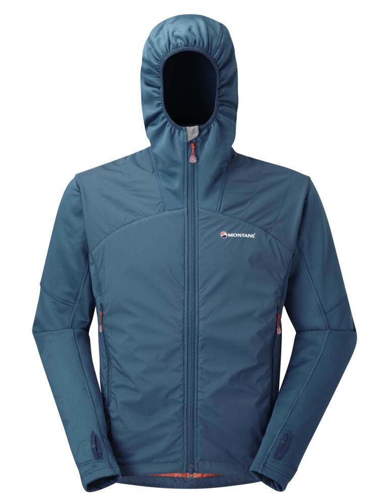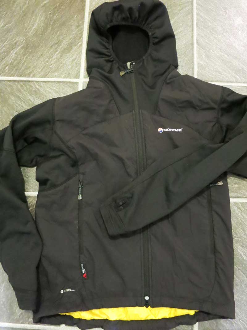 The arms and hood are Montane’s Dryactiv Stretch material. The hood is a neat scuba style, it is well shaped and is comfortable under a helmut.
