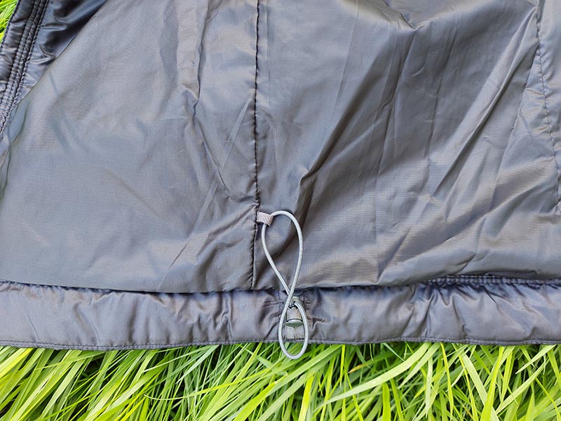 The quilting pattern resembles a wall of bricks, with small rectangular pockets of insulation in a row and the lines above and below overlapping. This stabalises the insulation and prevents insulation migration in the main body.and arms, with only the sides, below the armpit, using non-overlapping, channels. The result is a jacket that's surprisingly warm for its weight, 340g (M), and lack of visible loft.