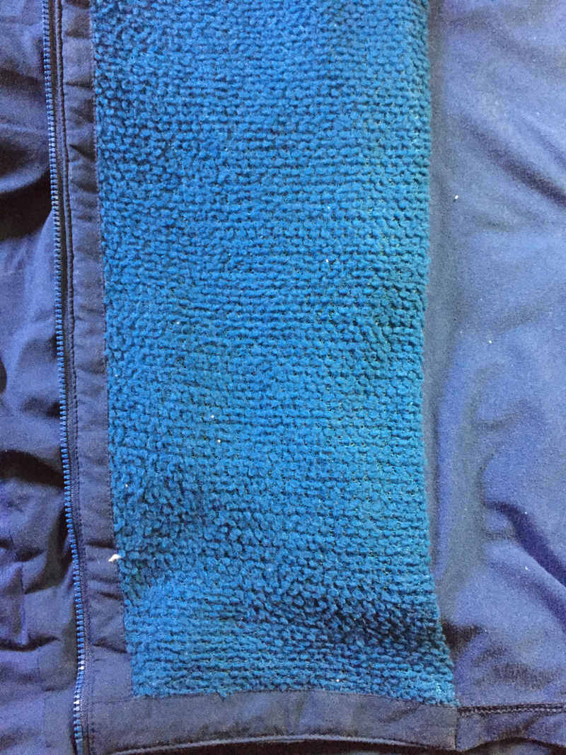 One half of each arm is shaggy-fleece, one half stretch fleece