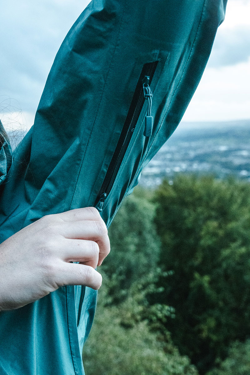 It’s a small(ish) niggle but I found the sleeves a tiny bit too long (I’m 5’5 with an ape index of +1cm so it’s not that I have particularly short arms) which actually I didn’t consciously notice until my partner kept asking me why I was rolling up the sleeves. Perhaps I didn’t notice because I’d been borrowing my partner’s spare lightweight waterproof jacket all these years and had to roll up the sleeves on those so it had become a habit. One plus on the sleeves, though, is the velcro cuff straps, which would have been great if I wasn’t continually rolling them up.