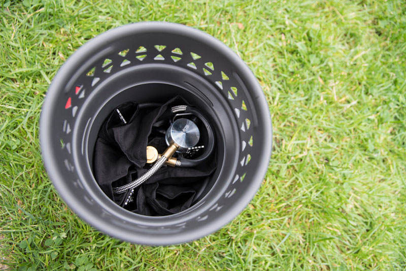 To build the stove is very simple. The twist and lock system for the pot and wind shield is perfect and can come apart using just one hand. You don’t have to lock the wind shield to the pot either as the supplied pot can be used straight onto the burner or the wind shield sits snug over the burner and the pot simply sits on top.