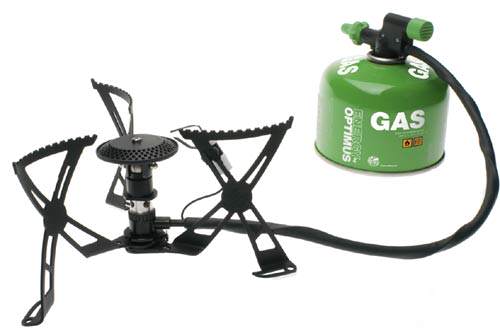 The Stella+ base takes everything from an MSR Titan through to a 1.5l pan and having a wide spread with the legs open is extremely stable. Part of the stability can probably be attributed to the weight as the stove uses steel legs and burner as opposed to a lightweight option. Unlike many gas stoves these days the Optimus Stella comes with the advice that it can be used with pretty much any 70/30 mix canister using the standard fitting rather than the manufacturer's own gas.