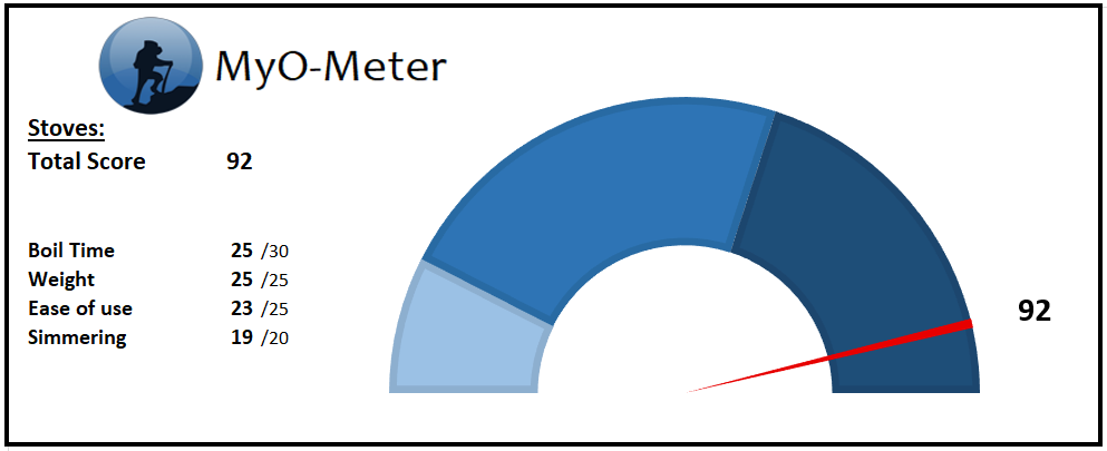 Ignoring this issue, the stove is superb, lightweight and compact and easy to use and set up, the new broader burner is excellent at protecting the flame from wind and rain and as a whole is a great little set up for solo hikers.