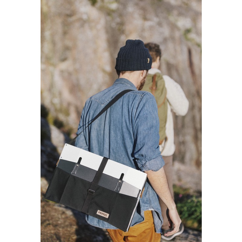 Onja is our most compact two-burner stove. Thanks to the carrying strap the stove is easy to bring along and functions just as well on the city excursion to the park as on the weekend trip with the kayak. When extended the body becomes a stable cooking unit that also protects the burners from the wind. The top is covered with an oak lid that doubles as a cutting board or as a plate to serve food on. Powered by Primus 100 g, 230 g or 450 g canister gas. There is also a Duo valve version that fits most gas cartridges with a valve on the market, perfect for those who bring the stove with them when travelling.