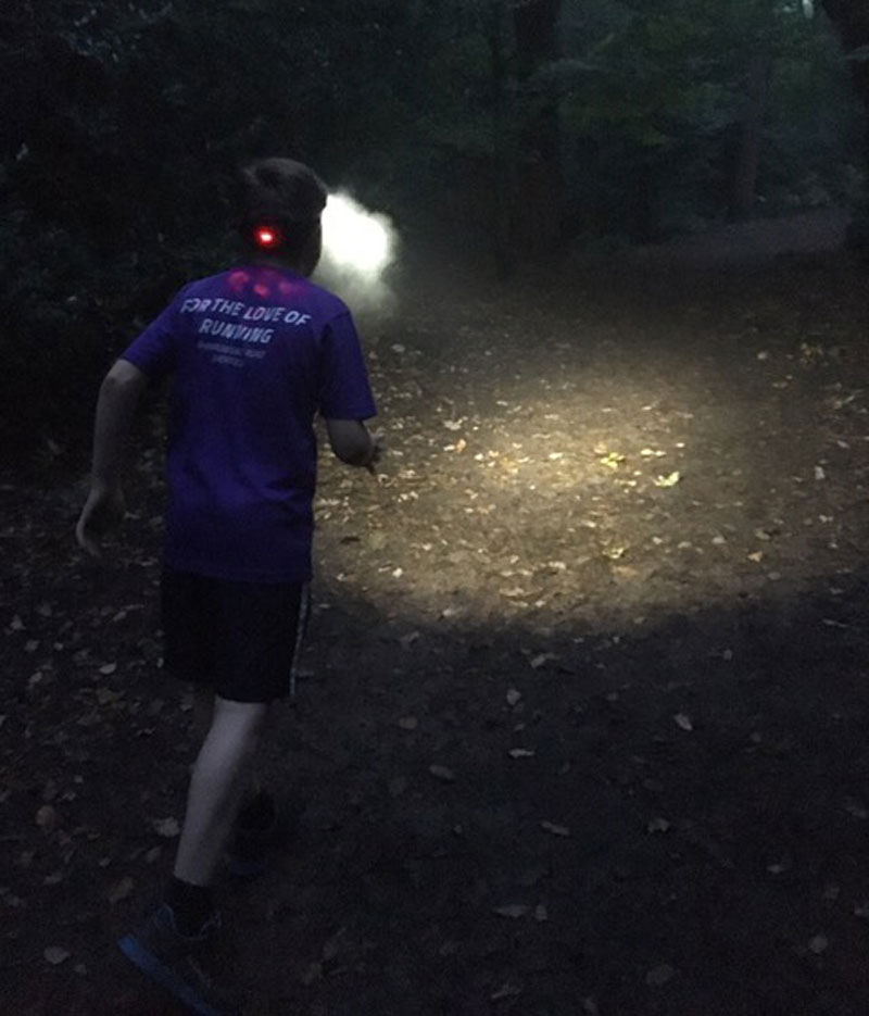 In conclusion, three features make this an ideal running headtorch; fantastic light output, daylighting the creepiest of dark woodland trails, the rear red light LED, and rechargeable batteries with up to three/four full nights worth of running in them.