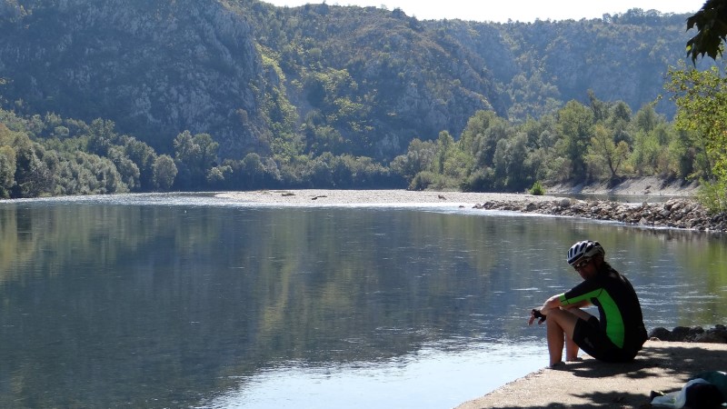 After a day of seeing the history of Mostar in Bosnia we set off back to Croatia. One side had the normal wide road and on the other side of the Neretva river. The first few miles were the front line of the tragic war of the nineties and once out of the town the trappings of tourism faded away. A gravel road/track remained mostly rideable and the peaty banks of the Neretva oozed a greenness of light. Small waterfalls, rapids and endless variety of kingfisher and other birds. Coming across perhaps one or two cars always to be met with smiles and waves. A perfect day where the legs turn and the wheels hum. A cold beer on the Bosnian side of the border before the passports get stamped and we cross back into the EU and Croatia. More industrial now but the Adriatic sea is ahead and the road is easy. No Dubrovnik crowds another cold beer before a few last kms and a cottage to ourselves in a vineyard for the night. A glass of red with a fresh filling and much needed meal and finally watching the pink sunset