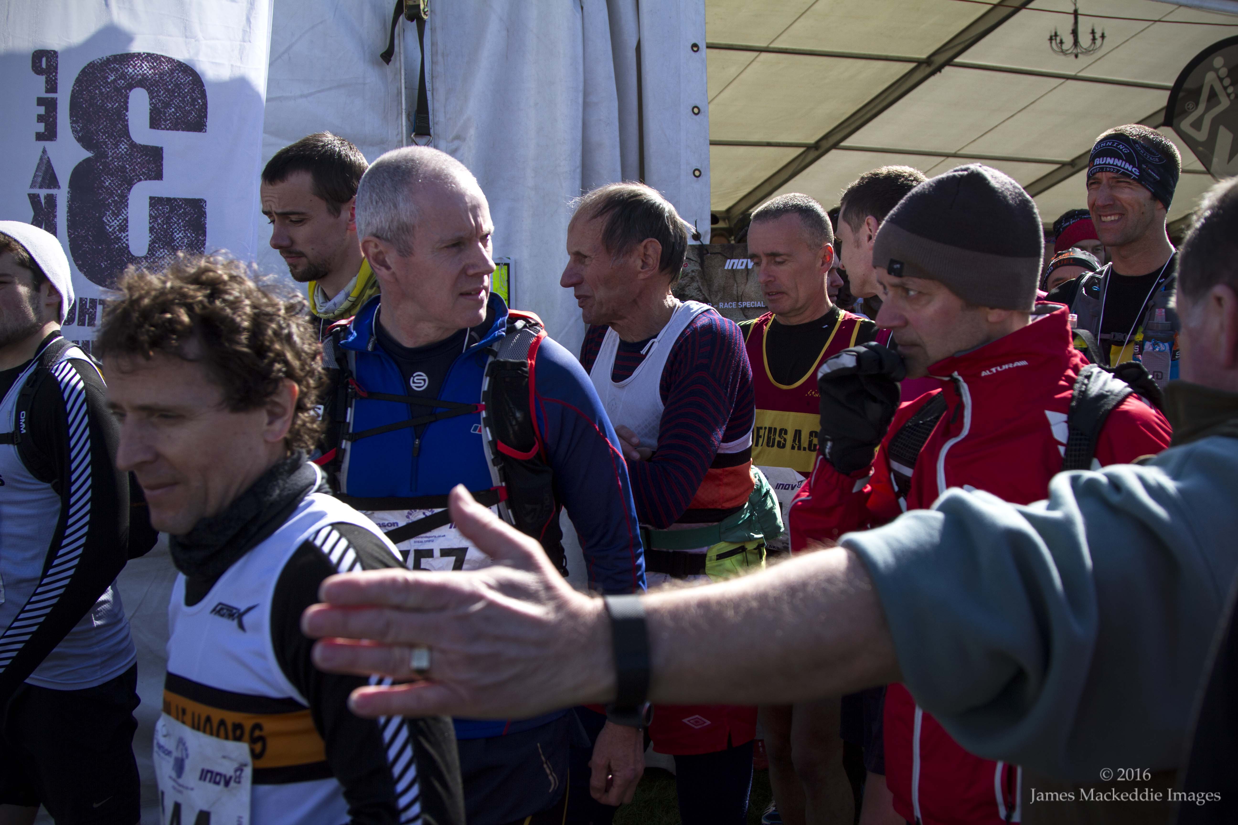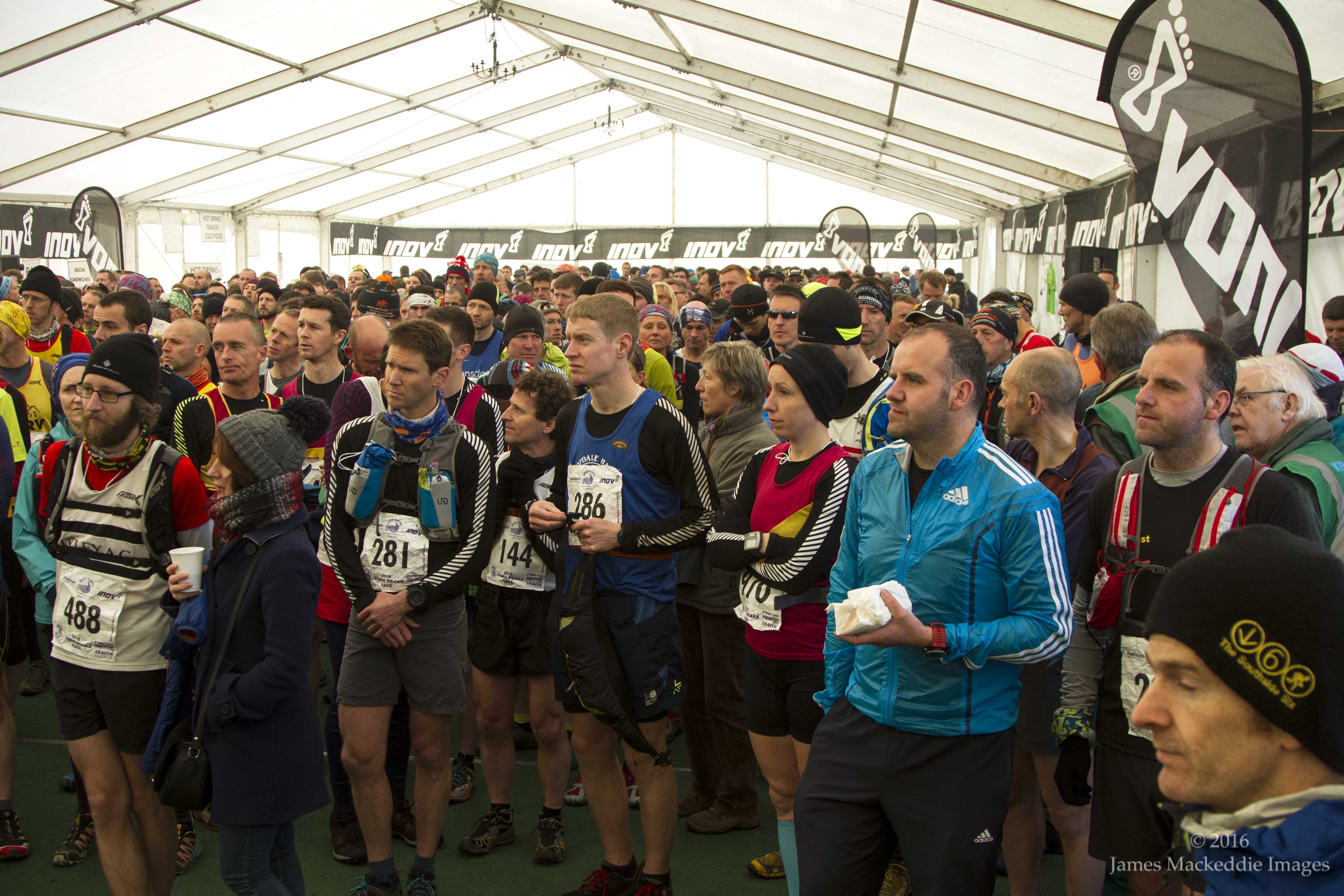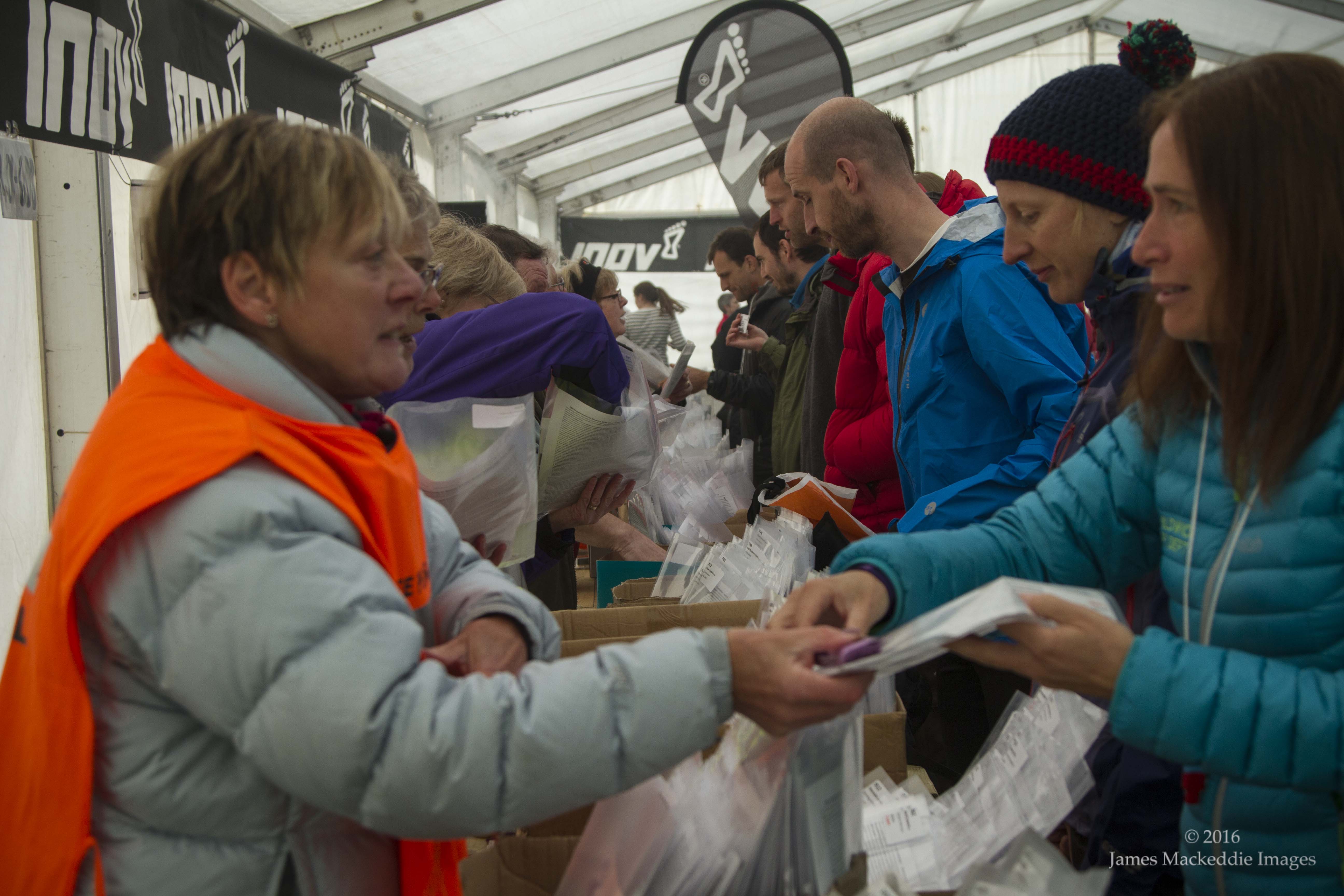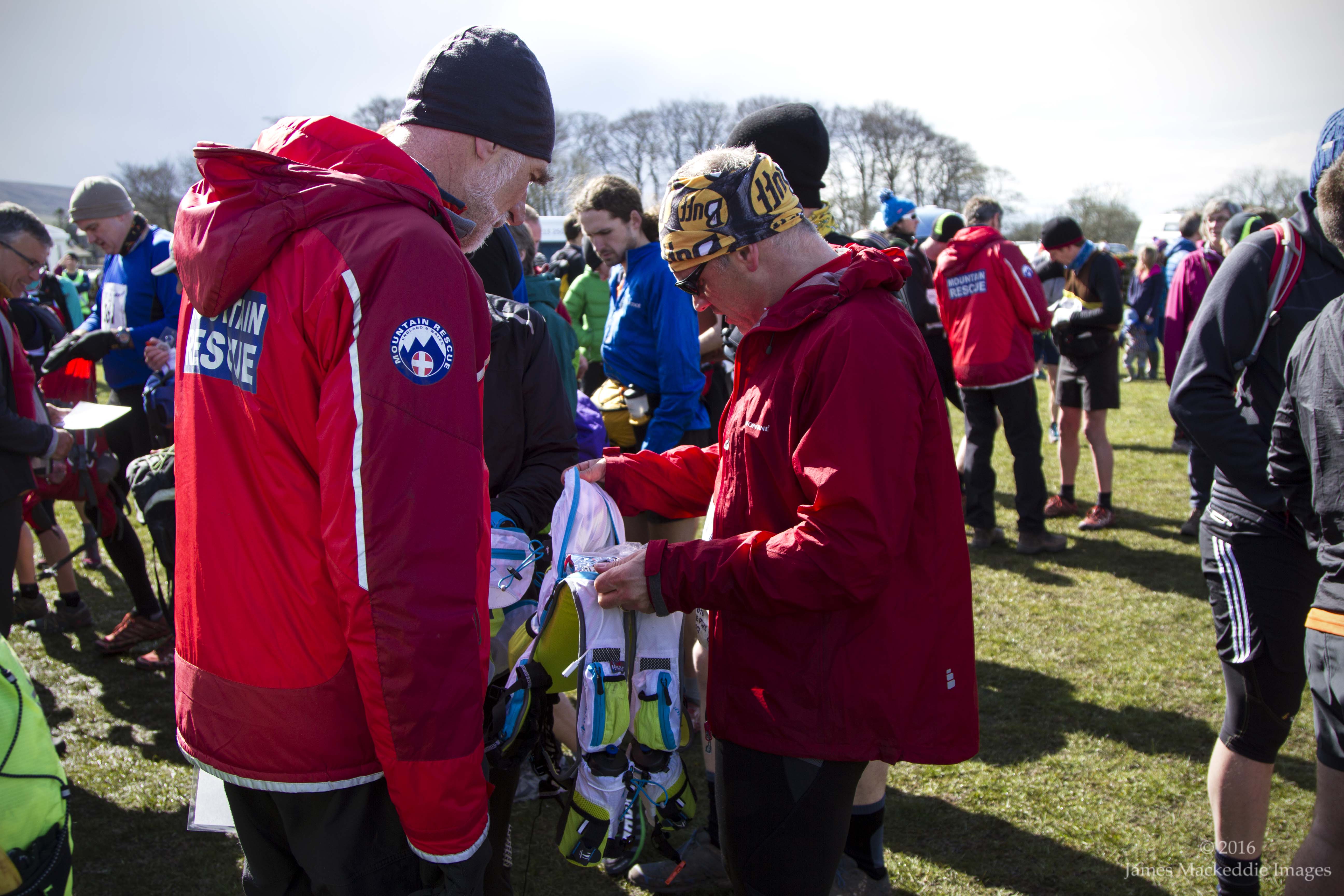 Mountain Rescue Teams conducted the mandatory kit inspections before runners entered the briefing.