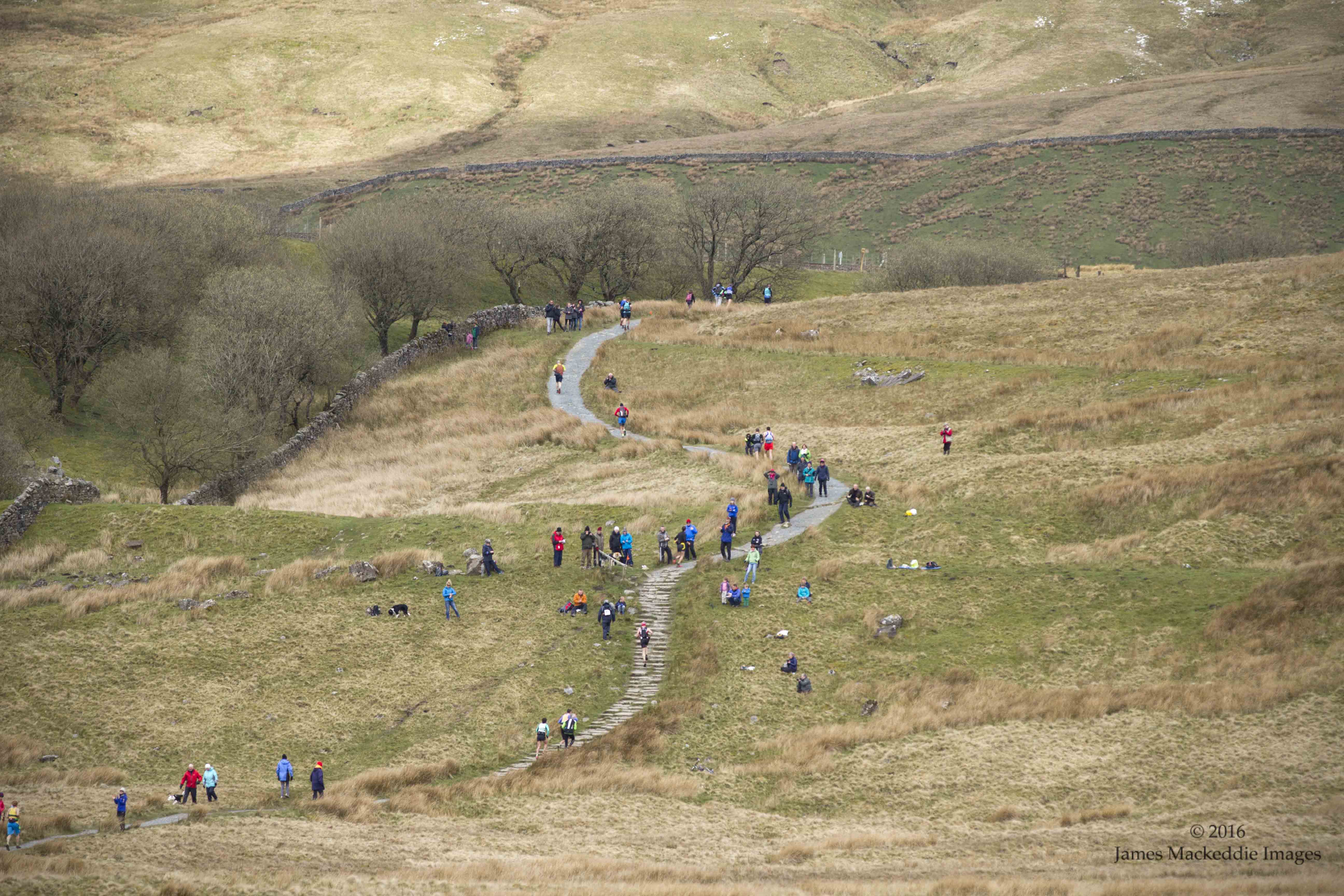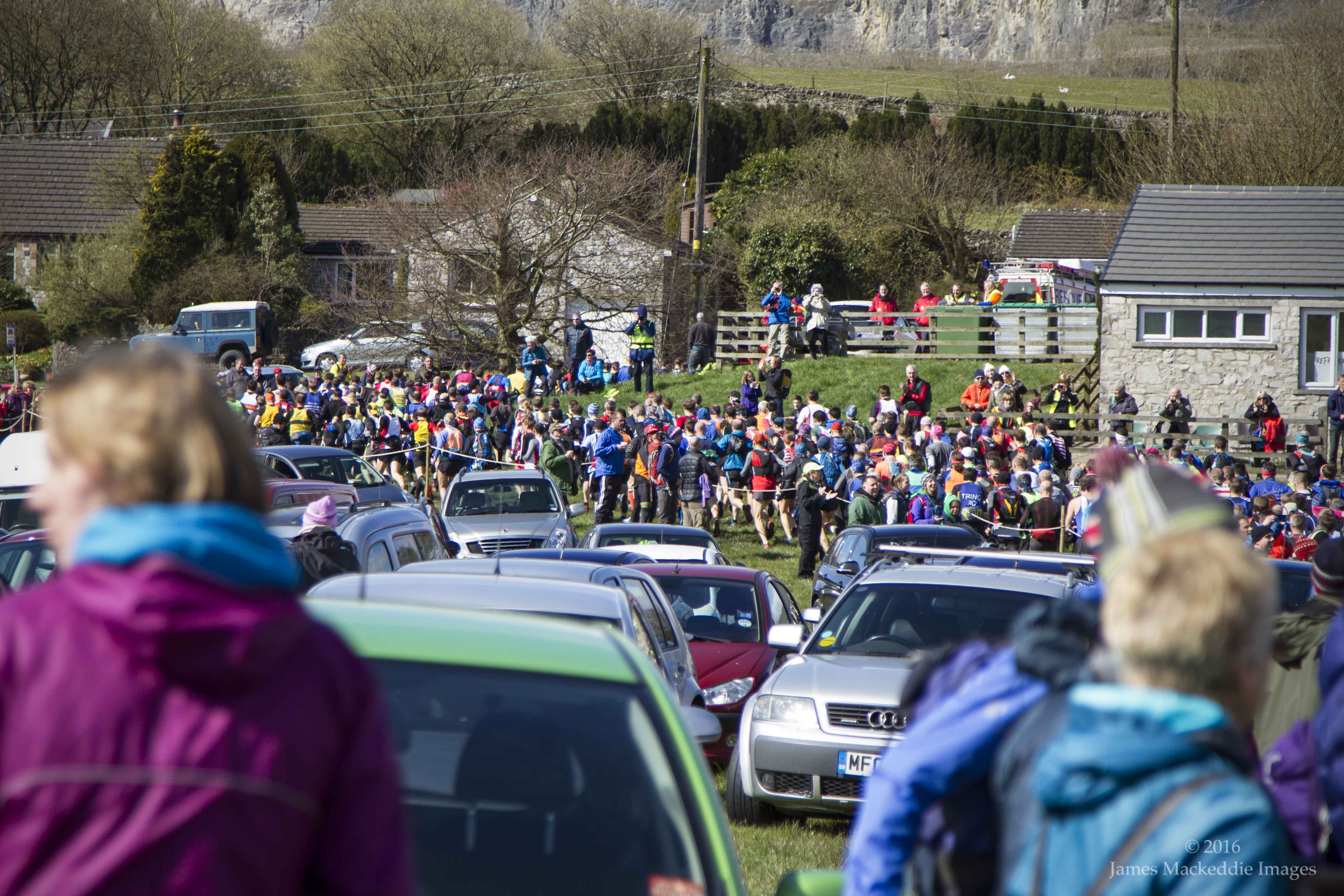 Just shy of 800 runners left the starting field, commencing the climb to Pen-y-Ghent.