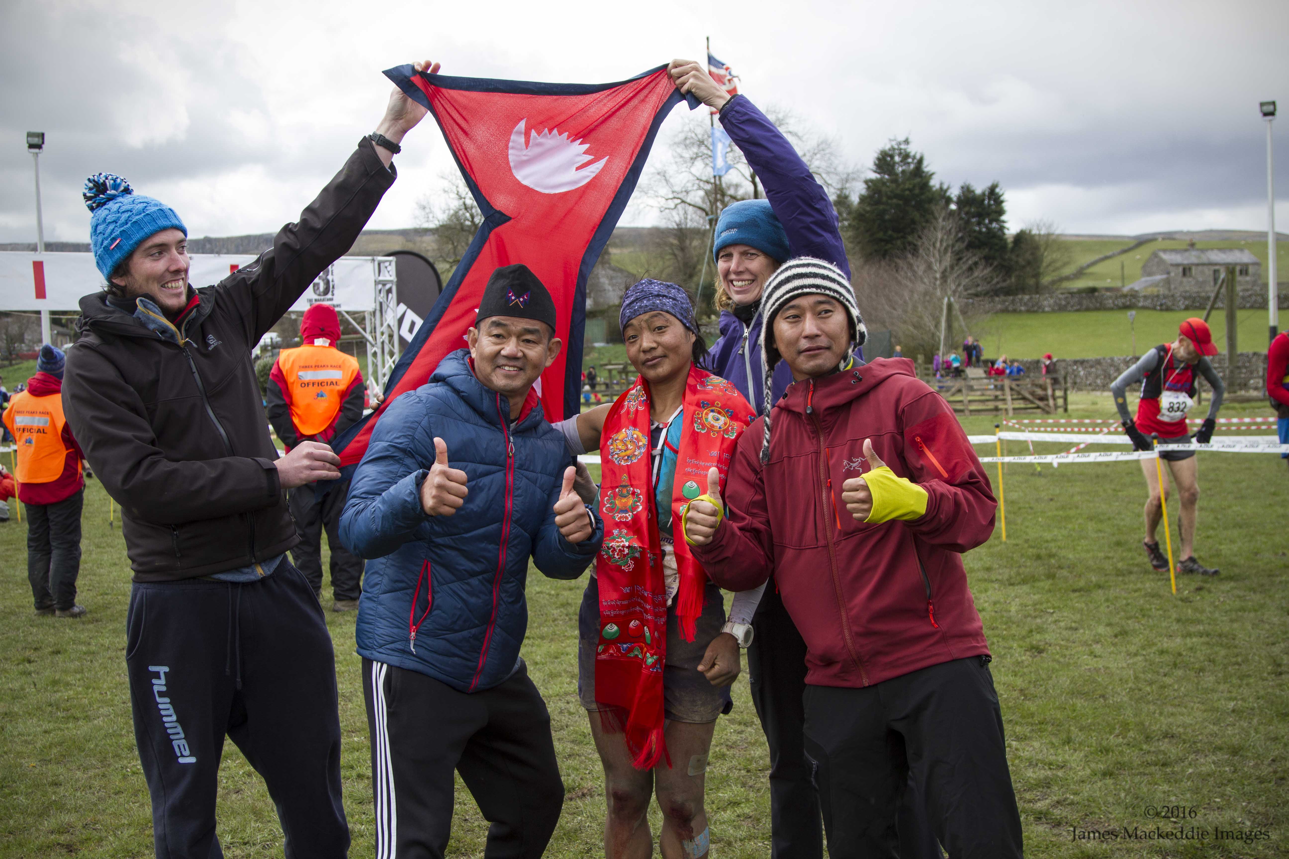 Mira Rai, on tour since Salomon's Advanced Week took 2nd in 3:35:55, finishing 65th overall. The crowd rawd as she entered the field and celebrations quickly kicked off despite bloodied knees.