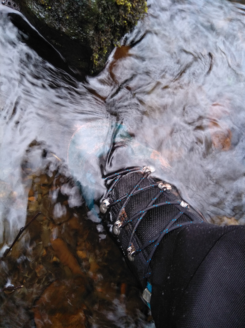 Superb comfort in mixed conditions from 20ºc heat to sub-zero and snow-capped mountain hikes or wading through rivers and waterfalls with bone dry feet and socks. They have been comfortable from day one, minus some personal preferences with how rigid they felt around the ankle but since continued use the flex in the ankles has improved and offers a good solid wrap and protection around my ankles, giving plenty of give for when walking. Whether this be on the coasts, mountain paths, bogs or river beds. Throughout they haven’t had any issues with the wet and are fail safe in the rivers!