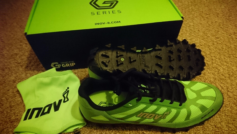 I had run in a couple of different pairs before, and they both gave me the same problem. After 5 miles of running I’d get blisters on my heels, so I just assumed that Inov8s were the wrong shape for my feet. However many of the guys in my running club swear by them and I’d always looked jealously on as they sure footedly breezed past me on the muddy sections of trail, so I was pleased to be offered a pair of the new Mudclaw G260s to review and hoped that the intervening ten years of running long distances had toughened up my feet.