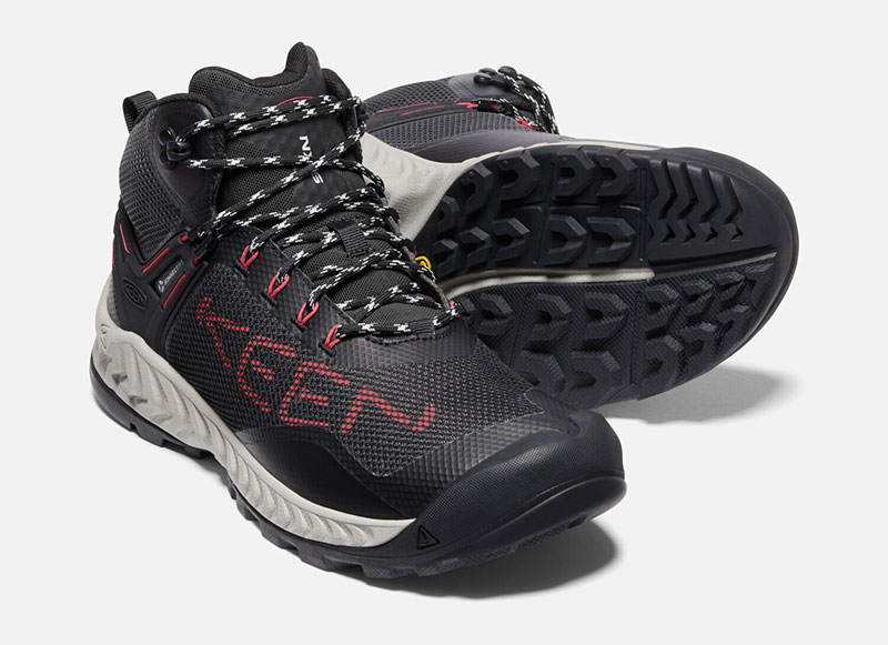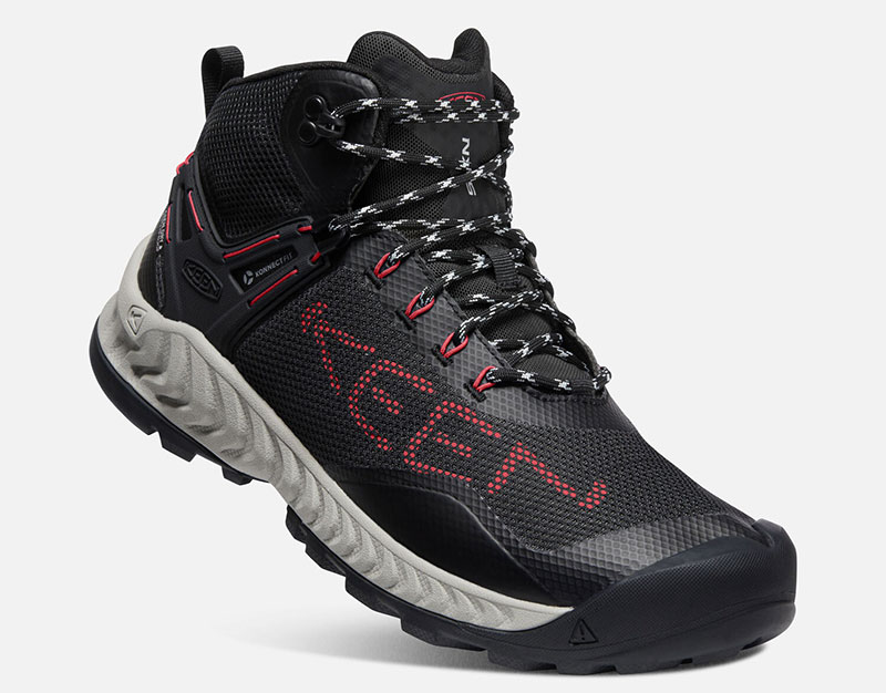 As a whole, the KEEN NXIS hiking boots have plenty of flex in the sole and body of the boot, wrapping nicely around the ankle, if using the mid-length boots, or a shallow design with a standard hiking shoe, more suitable for warmer temperatures. The exterior of the NXIS boot is woven with a waterproof layer below, allowing for that natural movement of the foot, but providing the waterproof layer to keep your feet dry when bounding through the environment.