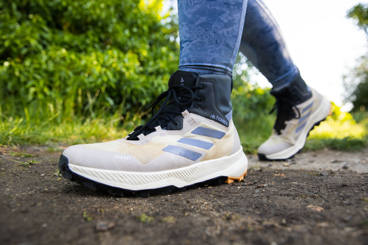 Since receiving the Terrex WMN MID RAIN.RDY Hiking Shoe I was initially intrigued to see how this lightweight shoe endures, in particular with the striking design of the light ‘Sand Strata’ colour but in all honesty I have been impressed. [editor note: the sand strata colour is not part of the current colours] It has been refreshing to try a shoe that not only looks good but performs too. Despite trekking through the mud in the boggy Welsh mountains or carefully stepping through damp forests in search of wild garlic these shoes still look nearly as good as new. Furthermore the Rain.Rdy technology truly lives up to its name. Despite many of my adventure companions vocalising the same thought I initially queried, of how these stunning shoes would stand up to the test of adventure, time after time my companions and I were pleasantly surprised with just how dry and clean these shoes stayed but also more importantly my feet.