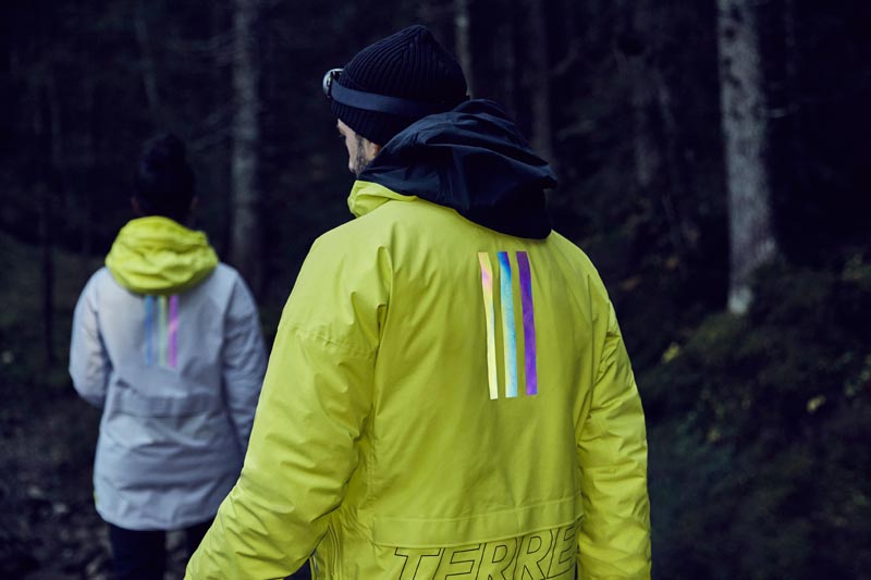 Zipped vents in each underarm offer ventilation, comfort and versatility when on the move. the jacket is finished with the signature three stripes in an iridescent reflective fabric for added visibility. made for the mountains and designed with a city aesthetic, the wind and water-resistant design is built with high-energy activities in mind, ensuring utmost protection and comfort in alpine climes with an adaptable, contemporary silhouette.