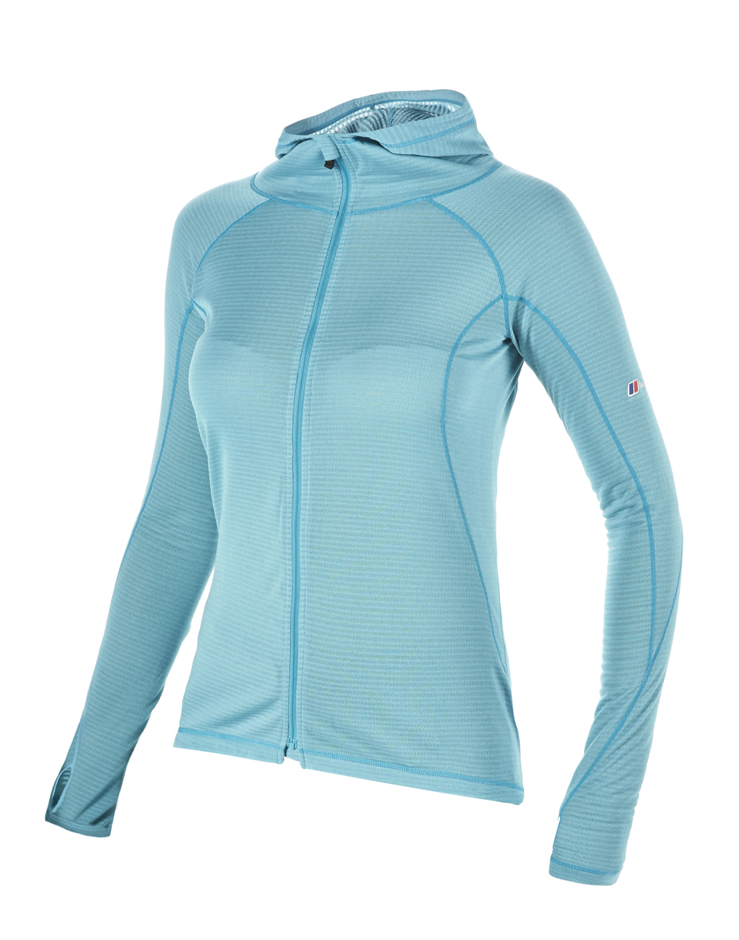 The extremely lightweight women’s Deverse Hoody Jacket is also made out of POLARTEC® POWER DRY® High Efficiency™ with POLYGIENE®. At 140g (size 12) this full zip jacket delivers an excellent combination of summer insulation and moisture management. A simple hood and thumb loops help provide additional insulation, while the streamlined cut allows for great freedom of movement on crag or hill. The Deverse Hoody jacket retails at £80.