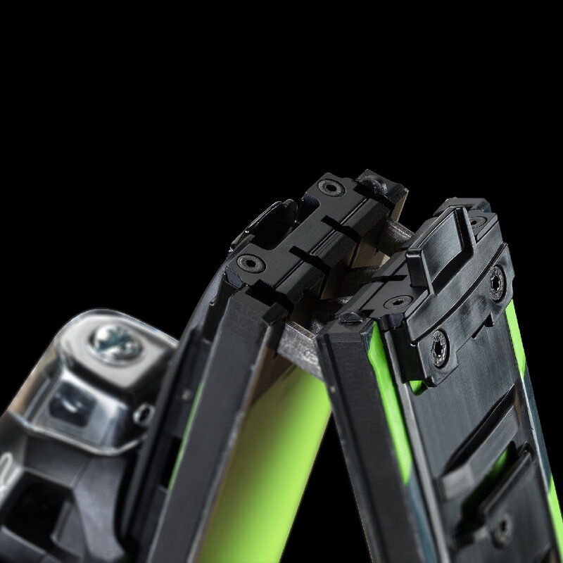 The secret of the Voyager is Elan’s revolutionary Connect Technology which uses a highly advanced four-axis mechanism that bonds and seals the ski together at the folding joint. This feature combined with a carbon-reinforced fusion plate serves as a loadbearing platform for support. The two components work together to provide torsional rigidity for superior ski performance, but also allow the ski to fold into a compact, easy to transport package, compliant with check-in baggage requirement.