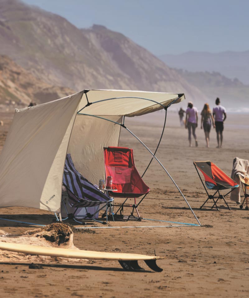 Whether on a day out in the countryside or on the beach, the new Helinox Royal Box provides portable protection from the sun. Two Helinox chairs and a table can be accomodated in an easily transportable structure. Constructed from DAC's proprietary, high-strength aluminimum alloy poles and a durable nylon canopy, the Royal Box is versatile, easy to assemble and offers SPF 50+ coverage. Shade, always available where it's needed..