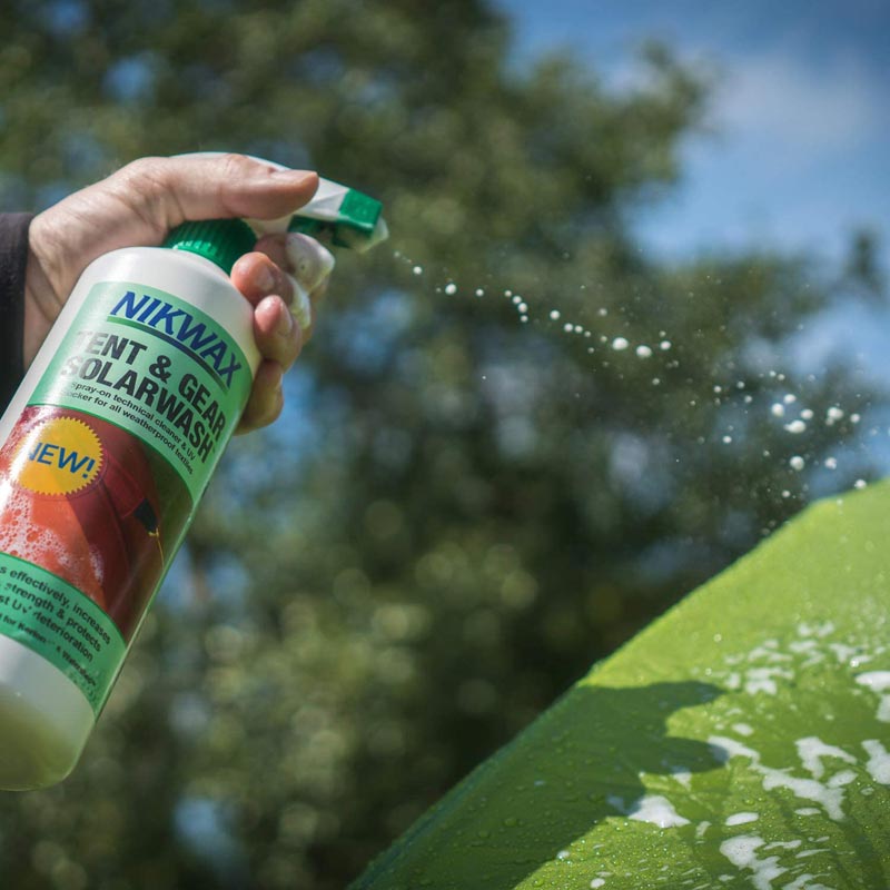 - TENT & GEAR SOLARWASH - An easy to use spray-on technical cleaner with UV protection for cotton, canvas and synthetic tents and gear. Cleans effectively, revitalises water repellency, and extends the useful life of fabrics by protecting against UV deterioration.