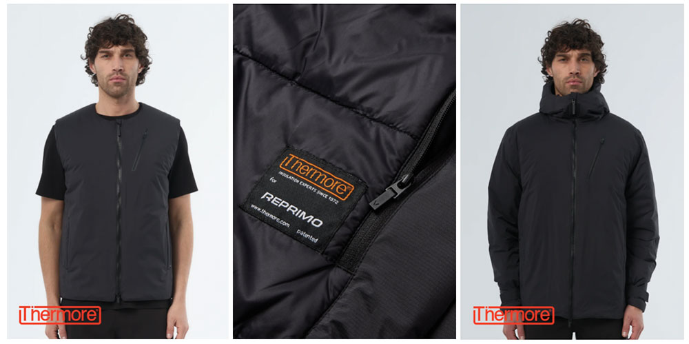 Both pieces are insulated with Thermore ECODOWN, the Milan-based company's recycled synthetic down alternative made from post-consumer PET bottles. The insulation is designed to provide reliable warmth while keeping garments lightweight, breathable and clean-lined - a key requirement for brands balancing technical performance with everyday wearability.