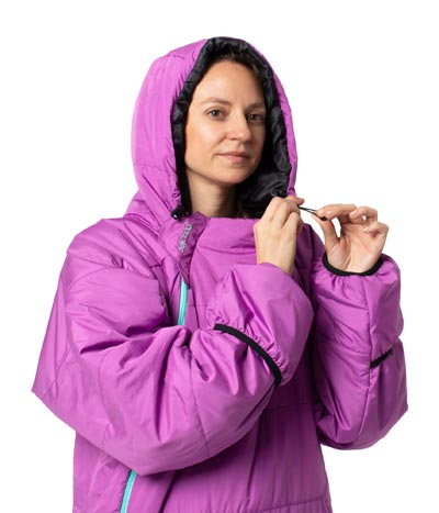 The adjustable, insulated hood offers added warmth, enabling wearers to stay warm and cosy down to near freezing temperatures and the two-way double zipper makes it very easy to quickly and easily get in and out of a Selk’bag and access pockets. All Selk’bag products come with a handy stuff sack to compress the bag and allow easy carrying and stowing.