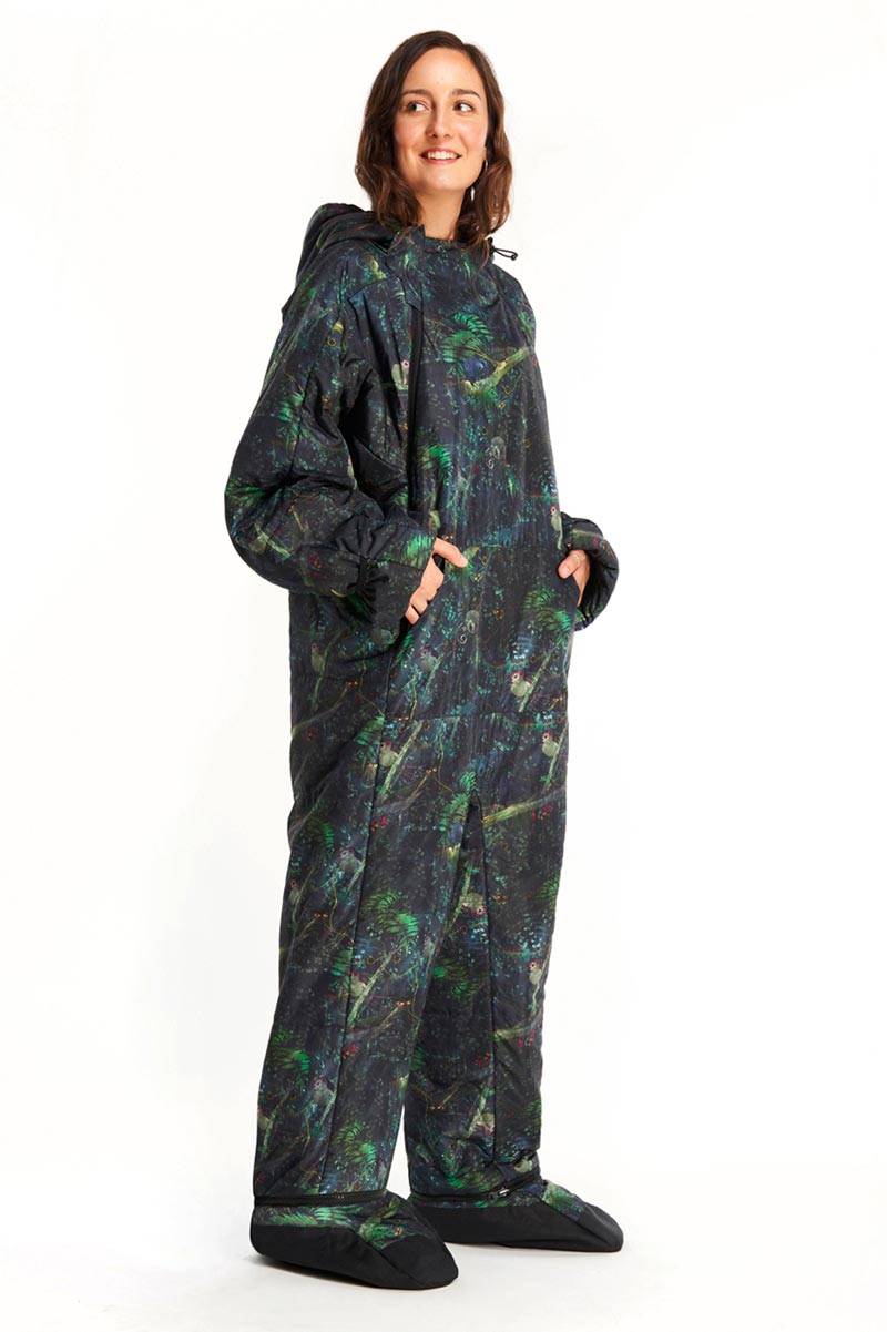 The limited edition Selk’bag Print Rainforest is inspired by the Patagonian jungle and pays an homage to the flora and fauna of the southern end of the world. It is made from a 100% Recycled Polyester Pongee shell and 100% Recycled Polyester lining and weighs between 0.96kg (S) and 1.51kg (XL).