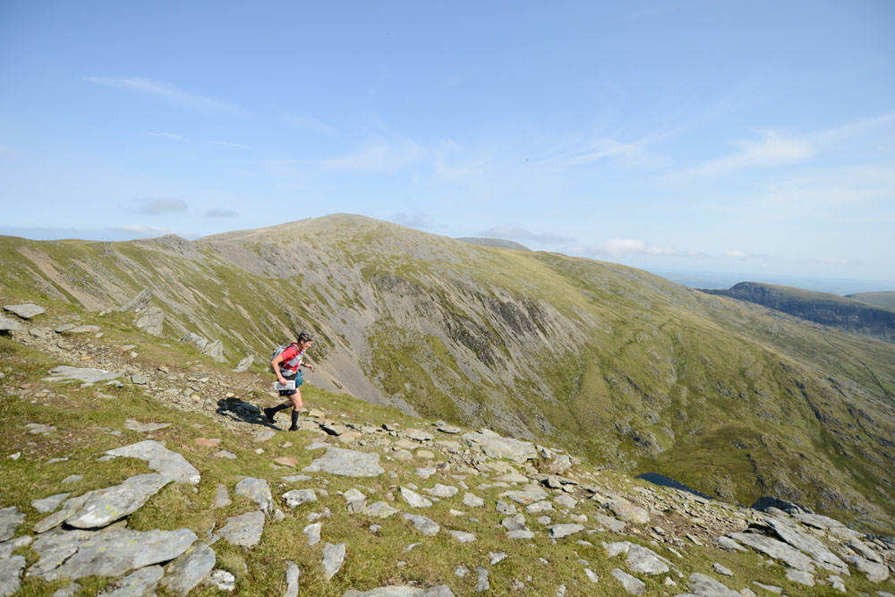 Wendy Dodds, who at aged 61 was the oldest competitor to complete the Berghaus Dragon’s Back Race™, begins the descent off Pen yr Ole Wen in 2012.© Jon Brooke