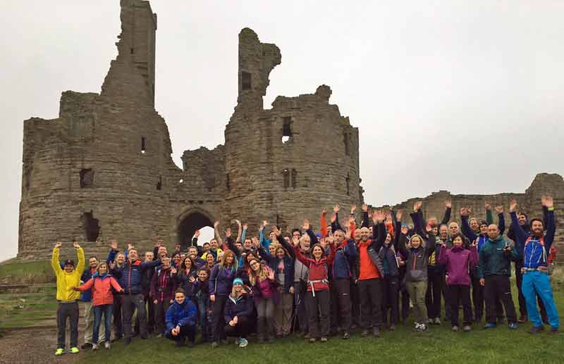 Berghaus staff at Dunstanburgh Castle in Northumberland, testing kit during a sales launch