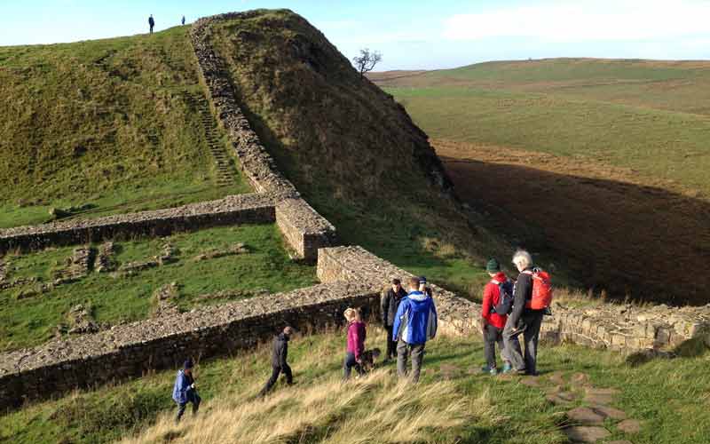 Berghaus staff walking alongside Hadrian's Wall