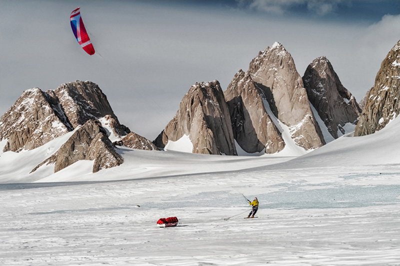 Snow kiting with the Spectre in the background