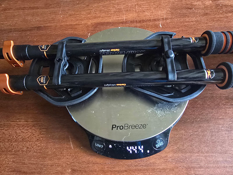 The first thing you notice is the weight, followed swiftly by their length when fully compressed. The name says "Ultralight" but that doesn't prepare you for just how light. Our scales tipped at 376g, just a tad below the quoted weight of 378g but somehow they felt even lighter. At 98cm compressed the poles felt long after years of using three section poles. The length was to prove a potential issue later, but first impressions were pretty much as expected. The feel and look were almost futuristic with the carbon fibres showcased in the construction, but above all they oozed quality.