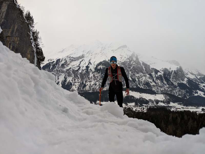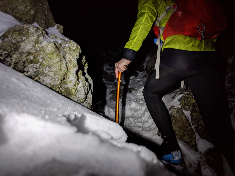 Every year kit gets lighter and lighter and gone are the days of almost Alpenstock length axes. Over the years I’ve noticed the trend for mountain guides is to carry shorter more technical axes and my 59cm mountaineering axe started to look a little long and heavy. The idea of strapping an axe to my running pack for winter running seemed absurd, until I saw the Petzl Ride (45cm at 240g) and Gully (45cm at 280g) axes.