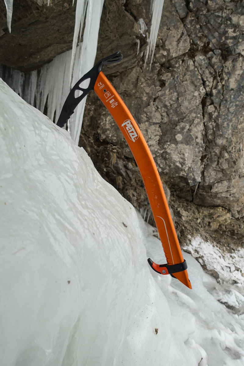 The Petzl Gully is the more aggressive, technical tool axe of the two (also comes with the Trigrest and a hammer option). Petzl describe this axe as being designed for Technical Mountaineering and Steep Skiing. Comparing the Gully to a Petzl Quark, it's definitely a capable technical tool, with a serious weight advantage over the Quark (a 270g saving per axe). Whilst the Gully doesn't climb like a Quark, it does sink into water ice and I would comfortably use it on lower grade winter routes or combine it with a Quark for a lightweight setup on routes that require a one and a half axe setup.