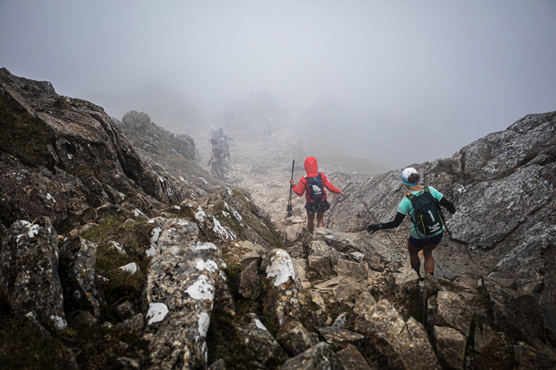 Berghaus Dragon's Back Race 2019 - Day 3 - runners descend into the mist from Cadair Idris - Copyright No Limits Photography