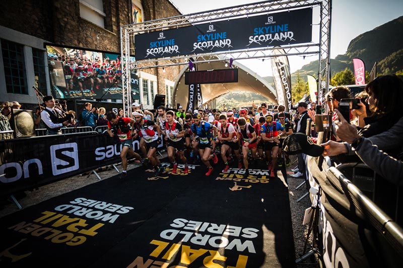 The start of a Salomon Skyline Scotland race at the Event Village - copyright No Limits Photography