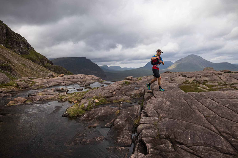 Cape Wrath Ultra 2021 - eventual winner Ian Stewart makes his way through a grand landscape - © No Limits Photography