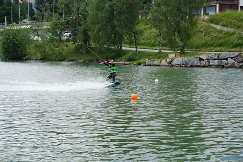 I plop into the – I am assured – 20 Degrees Celcius waters at the Etang Long lake and am soon I am skimming across the lake on a wakeboard, trying to keep my speed up so I can propel myself around the buoys at the ends of the new 120-meter line.