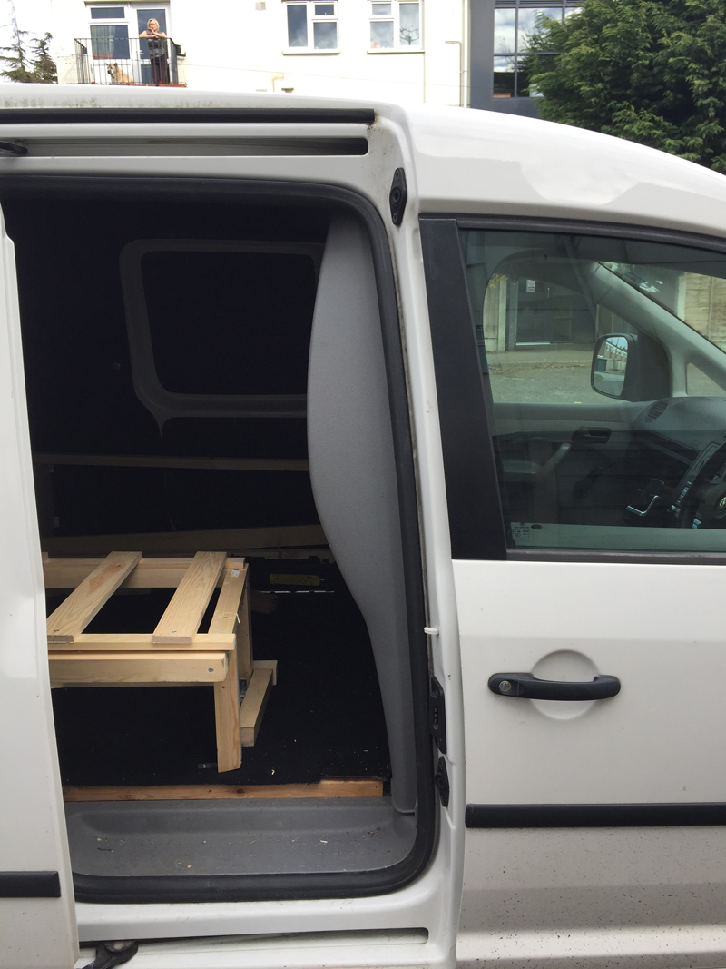 With the bed frame already constructed the refit was quite straightforward, remove the wall mounted jack and move the bed 50cm towards the back doors. More important was the way it made me stop, question the whole design and work out my priorities. The idea of a campervan had always been a kind of pre-formed image of comfortable seats that fold out into an equally comfortable bed, a cooker and sink and the power to run both the day to day essentials and the ability to recharge phones and tablets on the road. The limitations of a miniature version, however, mean a lower roof - particulary along the sides. Quite simply, given the height of the wheel-arch covers, the choice was between a "compromise" foam thickness suitable for both seating and sleeping or deciding what I wanted from a micro-camper.