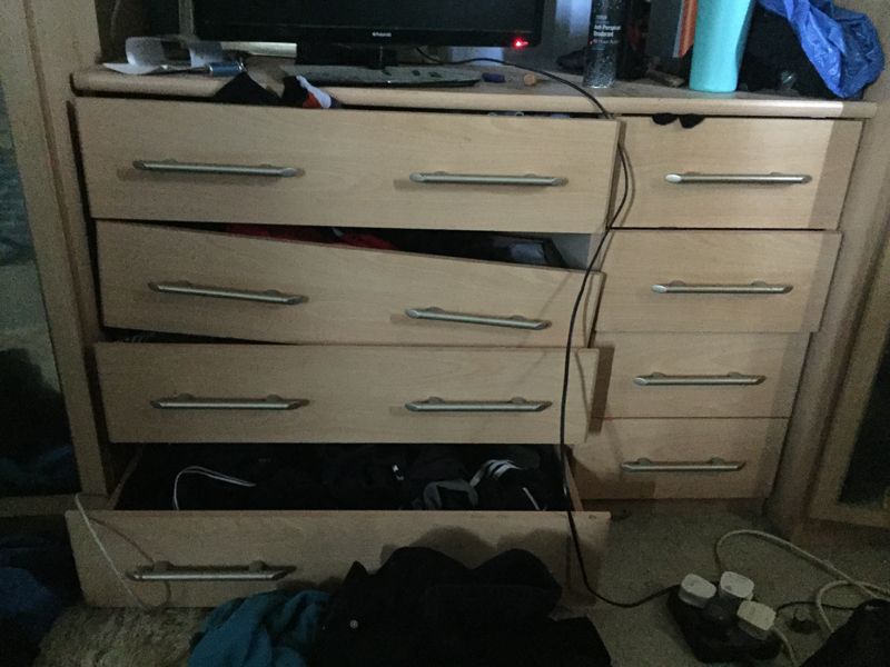With all bar the second small drawer removed the unit has two compartments, one wide and one narrow. The narrow end was penciled in for the sink and water supply while the wider side would hold the cooker and storage space.