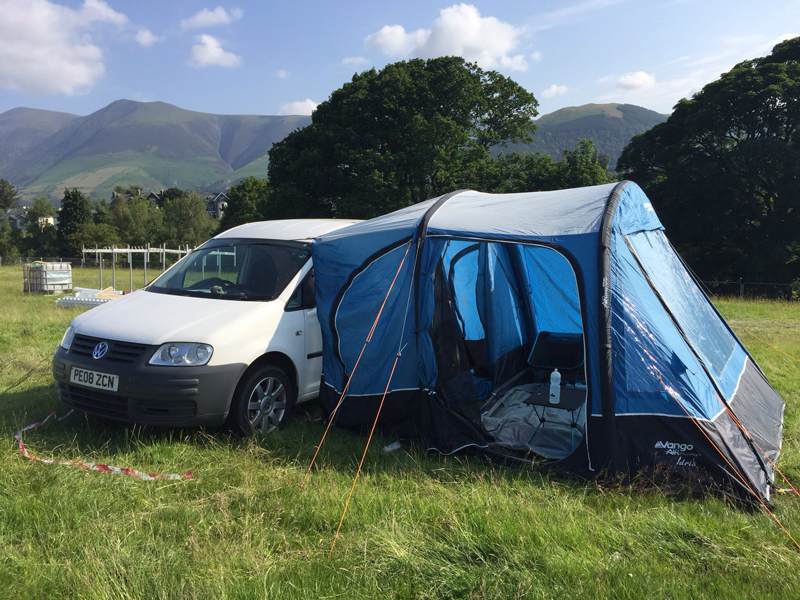 The final part of the construction was the mandatory naming and on May 5th Oleg was fully functional. Perfect - no, but ready to go while the tweaks continue. The 5 multi-LED lights were trimmed down to 2, the doors were finally installed and a Vango Idris II Low awning for the side was added. By early June, with a new Red Original coolbox and a collapsible storage seat for clothes it was ready to debut at Keswick Festival.